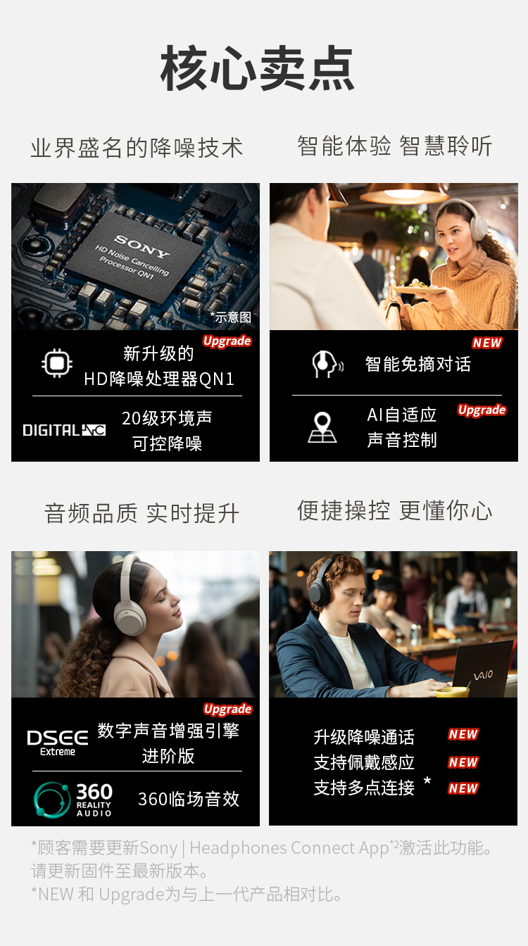索尼(SONY)WH-1000XM4 头戴游戏耳机 黑色