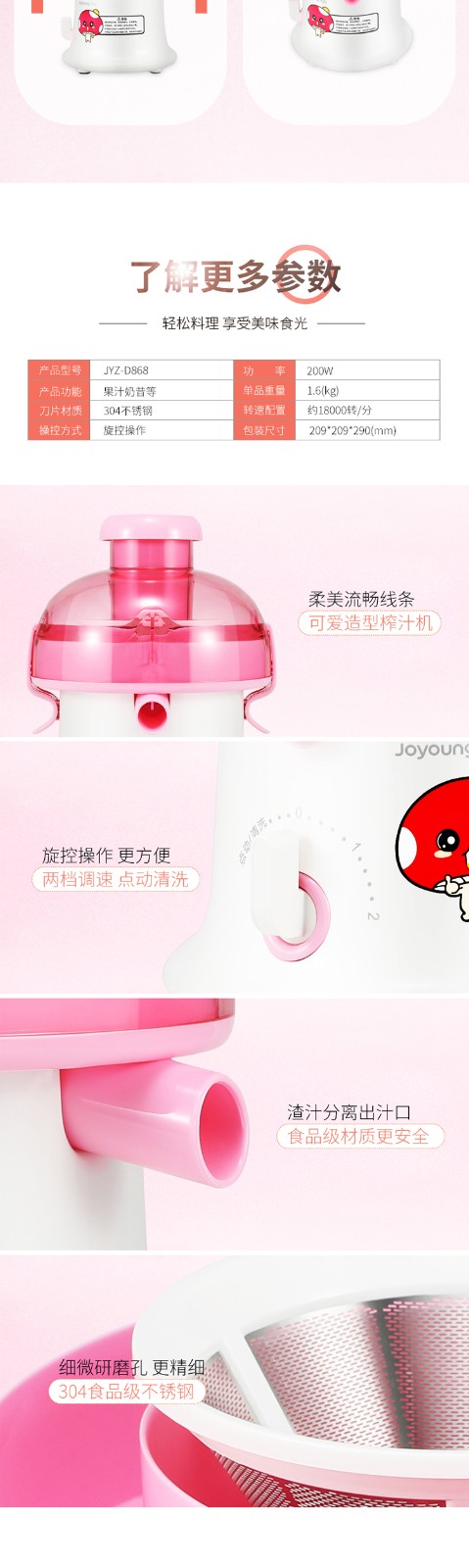 商品名称:九阳榨汁机JYZ-D868白色 6922208425086