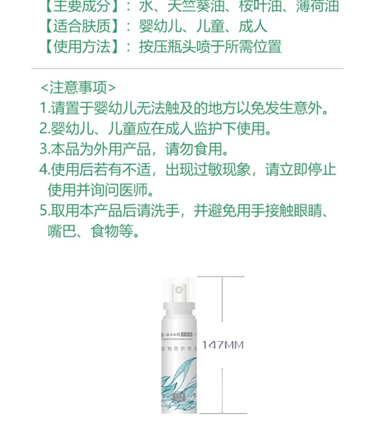 商品名称:云南白药清逸堂携爽 防护喷雾100ml 新疆西藏不发货