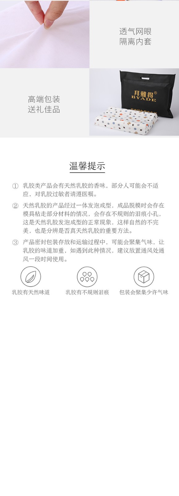 商品名称:拜雅得儿童乳胶枕头泰国原装进口小学生3-6-10岁小孩天然纯橡胶枕男女儿童宝宝贴合颈椎枕芯44*27*7 动物足球
