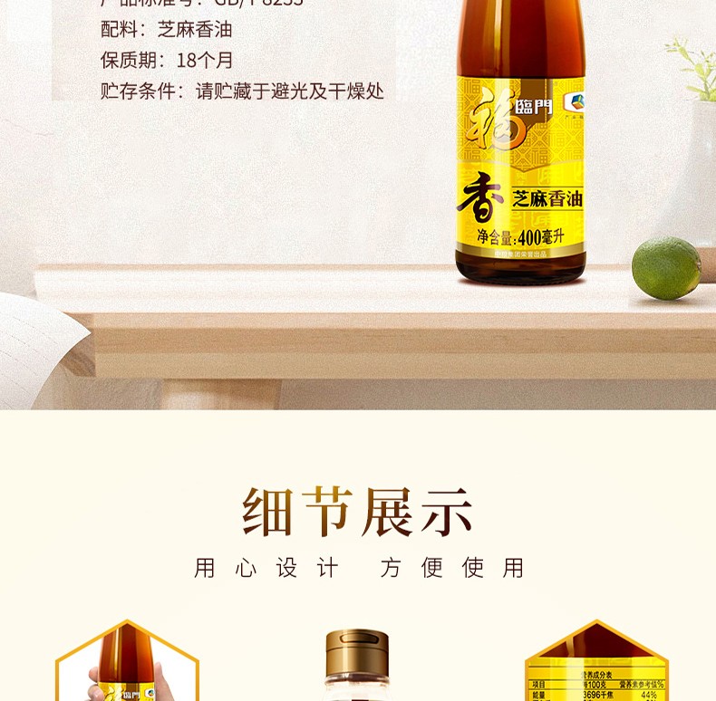 商品名称:中粮福临门小磨香油礼盒(一级) 250ml*4