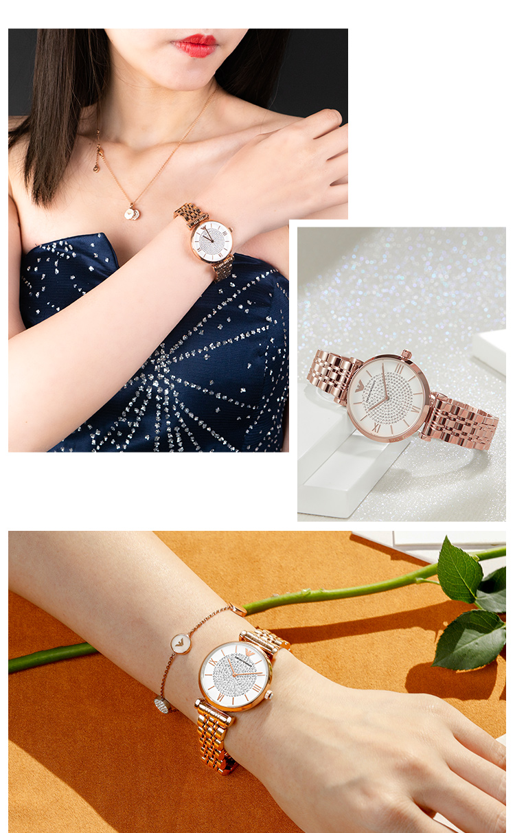 阿玛尼( Emporio Armani)19年新款满天星手表 女玫瑰金钢制表带镶钻石英女士腕表 AR11244