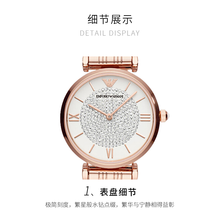 商品名称:阿玛尼( Emporio Armani)19年新款满天星手表 女玫瑰金钢制表带镶钻石英女士腕表 AR11244