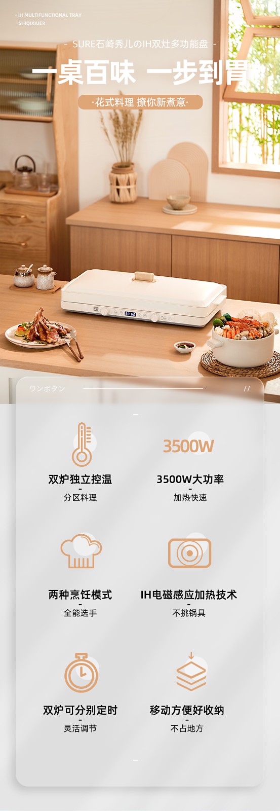 日本SURE石崎秀儿多功能锅SES-IH3502 胡椒白