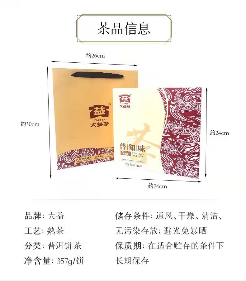 商品名称:大益-普知味3年陈礼盒(B版)(云南普洱熟茶 357*1盒)*2份