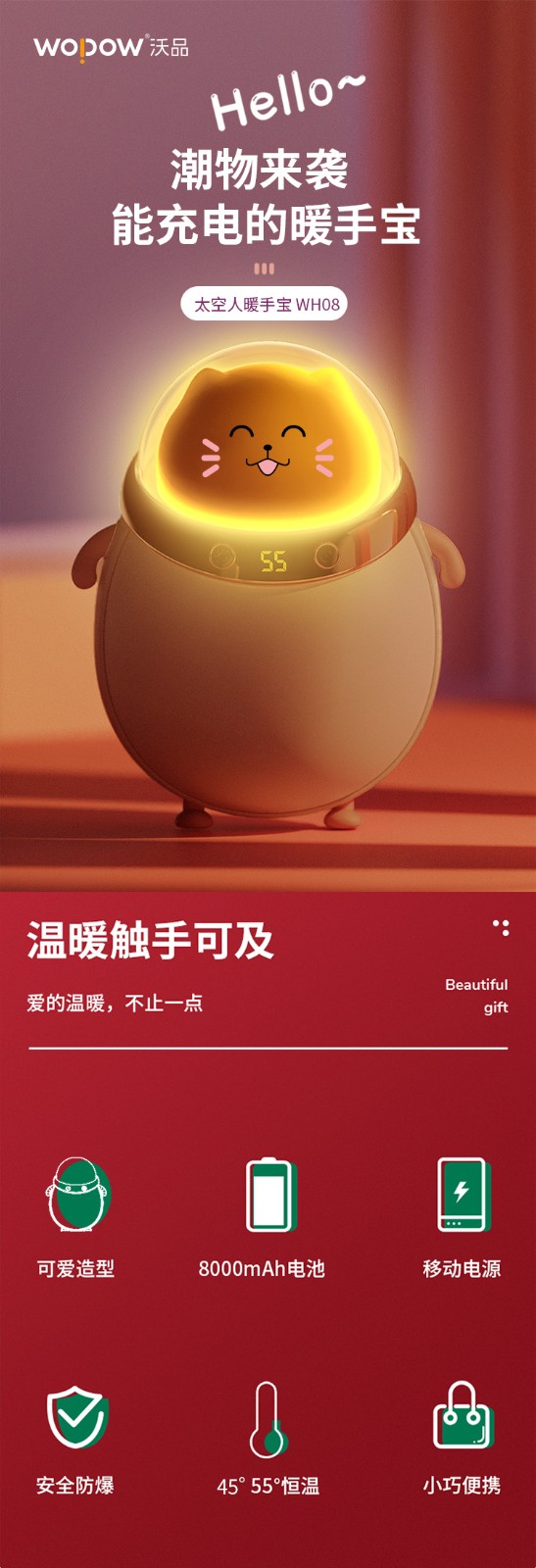 商品名称:沃品 太空人暖手宝WH08粉色 8000mAh