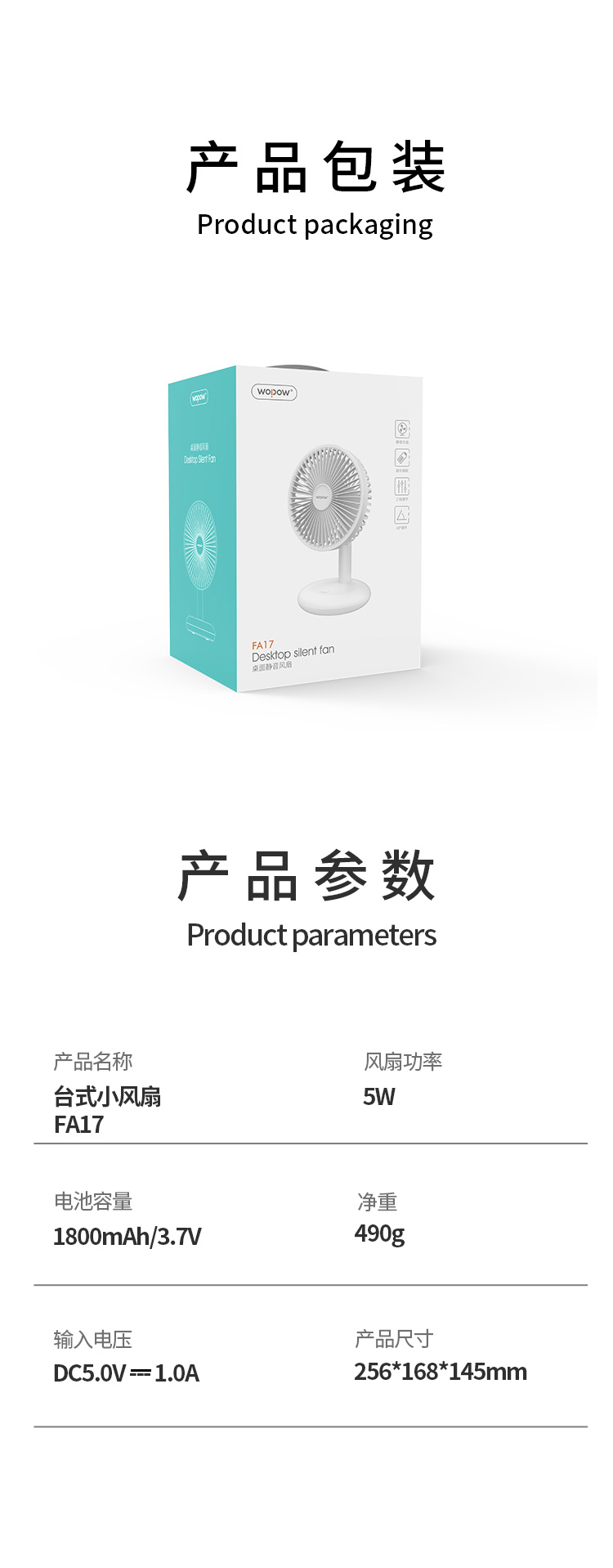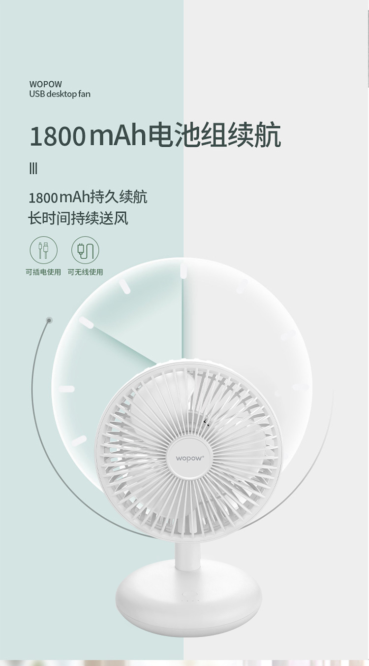 商品名称:沃品 台式小风扇 三档风速风力强劲 FA17 白色