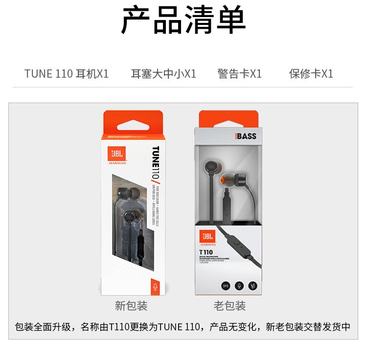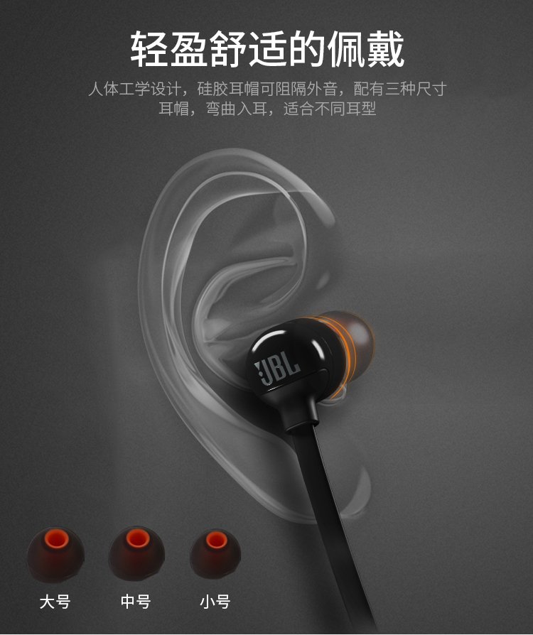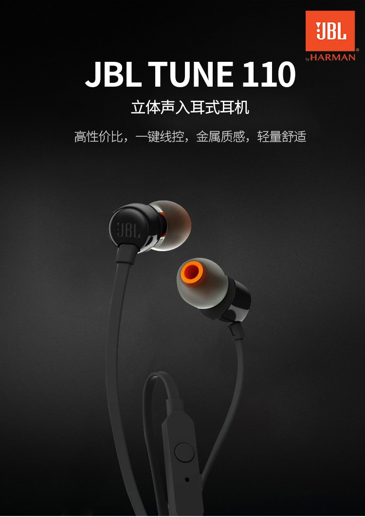 商品名称:JBL T110 立体声入耳式耳机耳麦 有线耳机带麦可通话 红白蓝黑可选 下单前备注