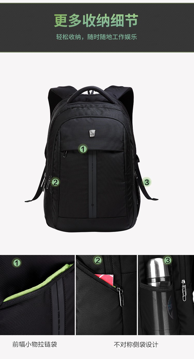 商品名称:爱华仕(OIWAS)商务电脑包15英寸 时尚韩版男女双肩包 4148黑色