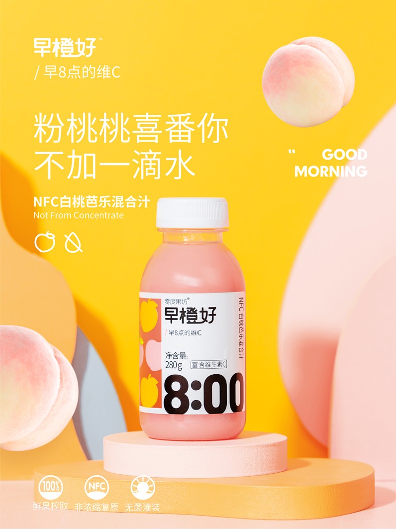 商品名称:零度果坊 NFC白桃芭乐混合果汁100%鲜果榨取 280g×8瓶 6928126700809