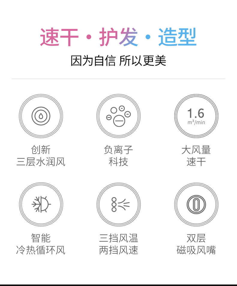 商品名称:直白 水离子吹风机 HL505 6971016544274
