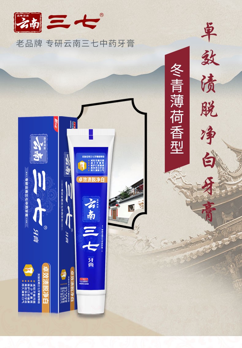 商品名称:云南三七卓效渍脱净白牙膏100g*3支