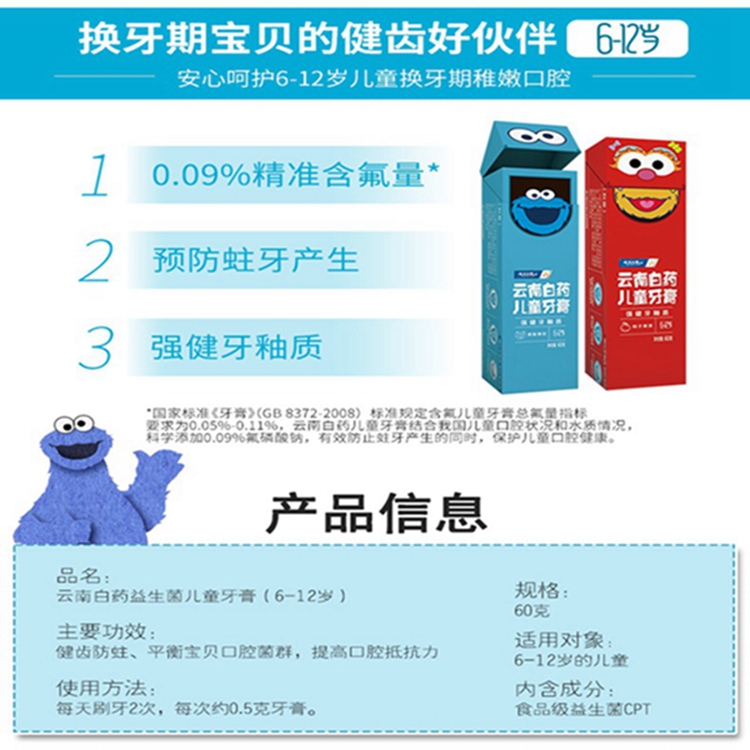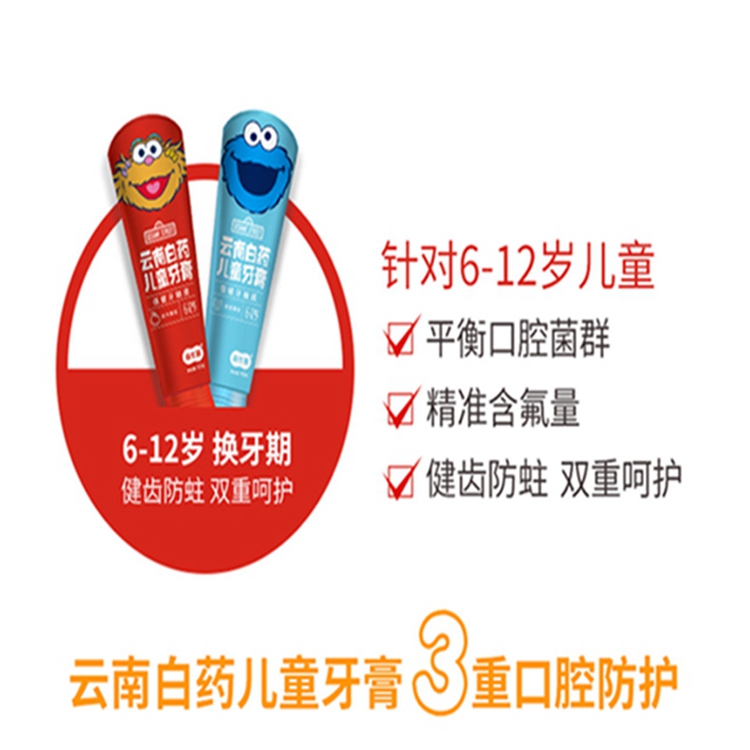 商品名称:云南白药儿童牙膏(桃子果茶)60g