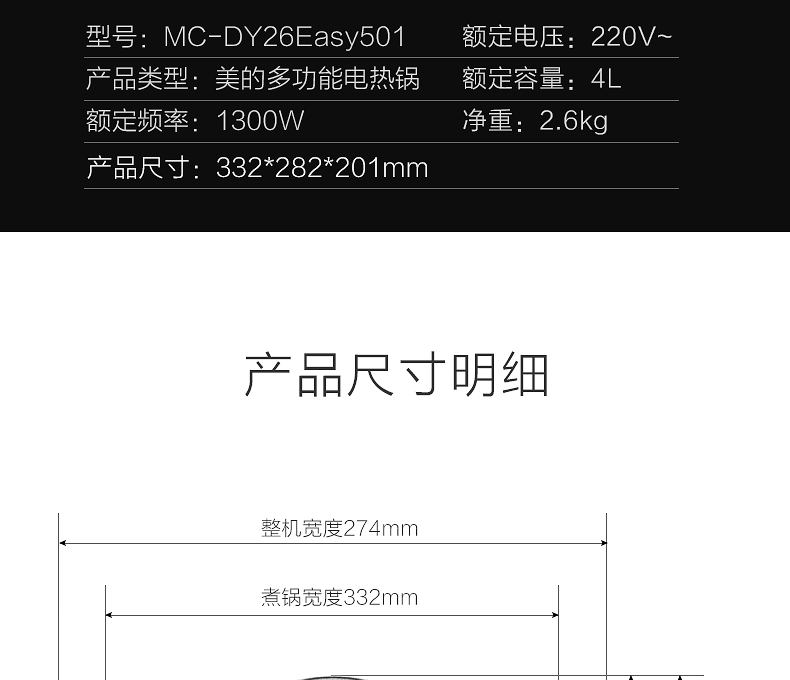 商品名称:美的 电火锅 DY26Easy501 4L 6939962760841