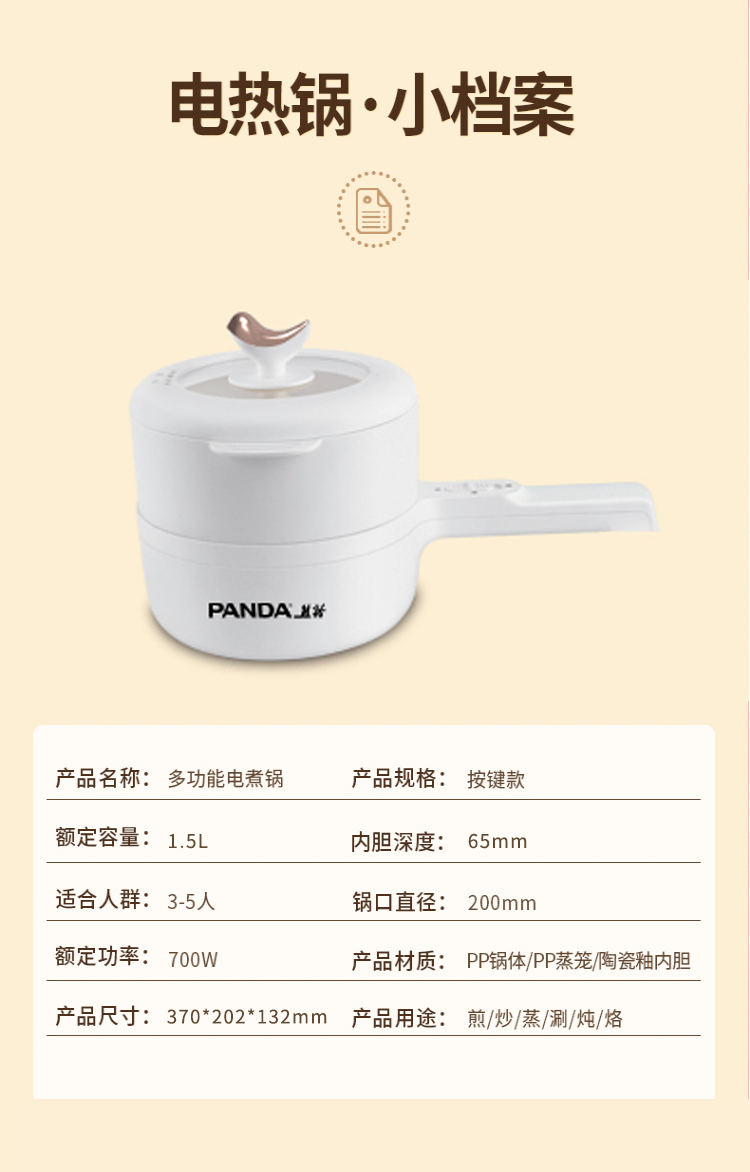 商品名称:熊猫多功能电煮锅TRZG1101