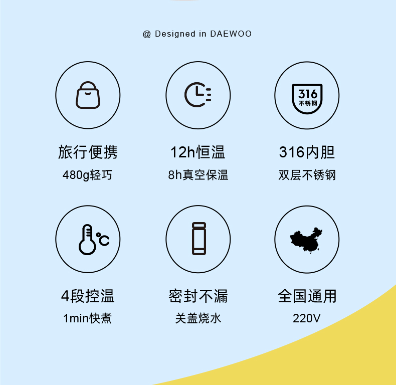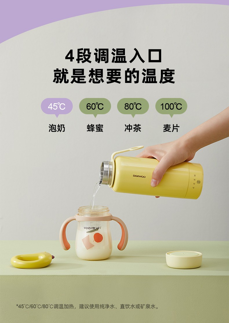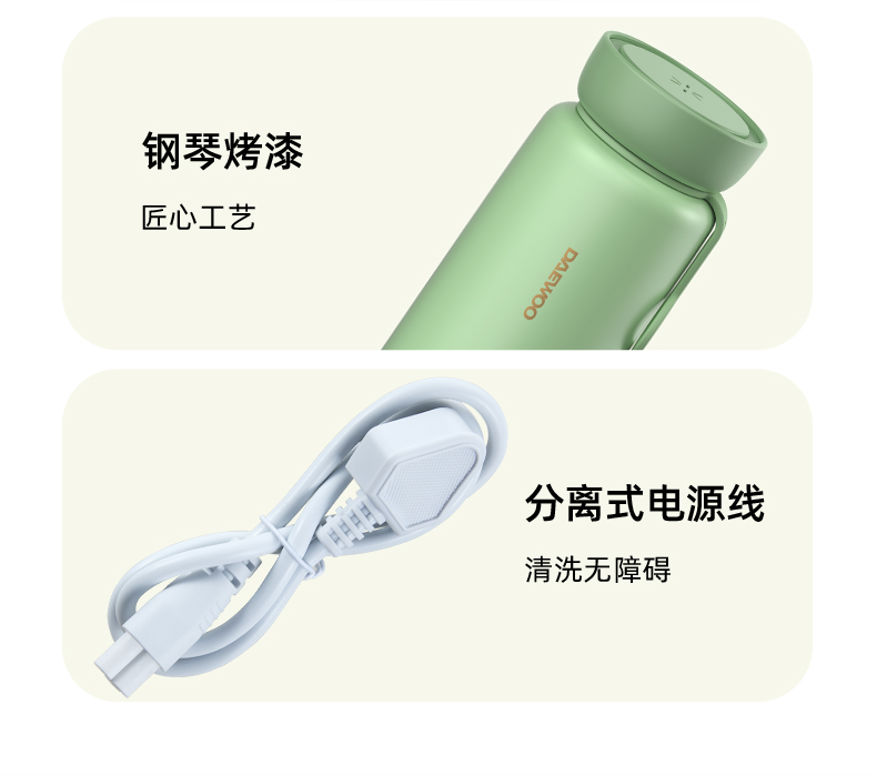 商品名称:大宇便携式电热水杯D8 绿色/黄色/白色/橙色/紫色下单请备注颜色
