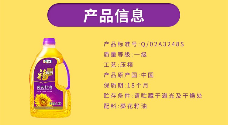 商品名称:中粮 福临门营养家黄金小黑葵葵花仁油1.8L 偏远另加运费