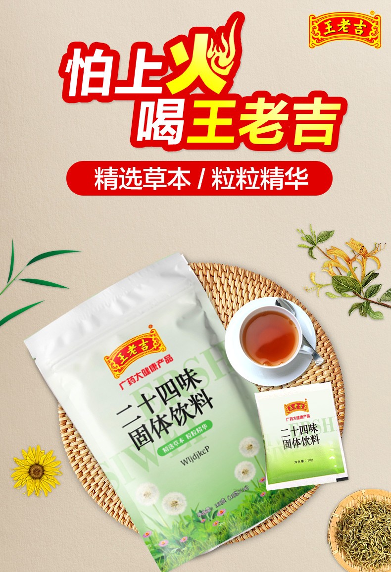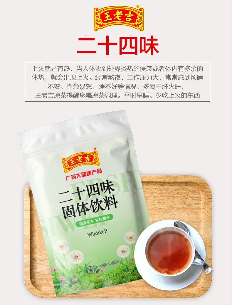 王老吉 固体凉茶六包装 960g(二十四味固体凉茶160g*1包 +鱼腥草固体凉茶160g*1包 + 金银花固体凉茶160g*1包+四季清凉固体凉茶160g*1包 +御湿固固体凉茶160g*1包 +御热清固体凉茶160g*1包)