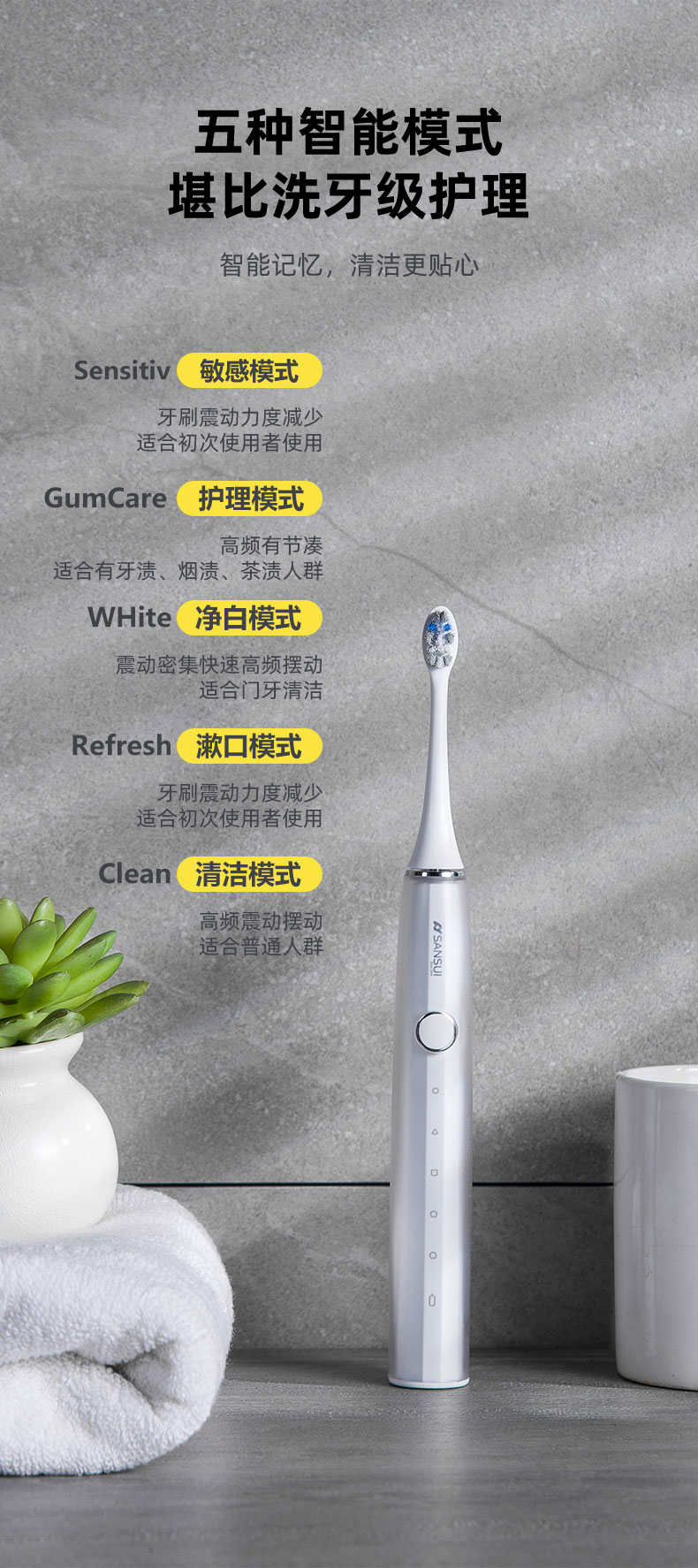山水(sansui)五种定制模式+智能记忆电动牙刷SDYS-22B 6945960089266