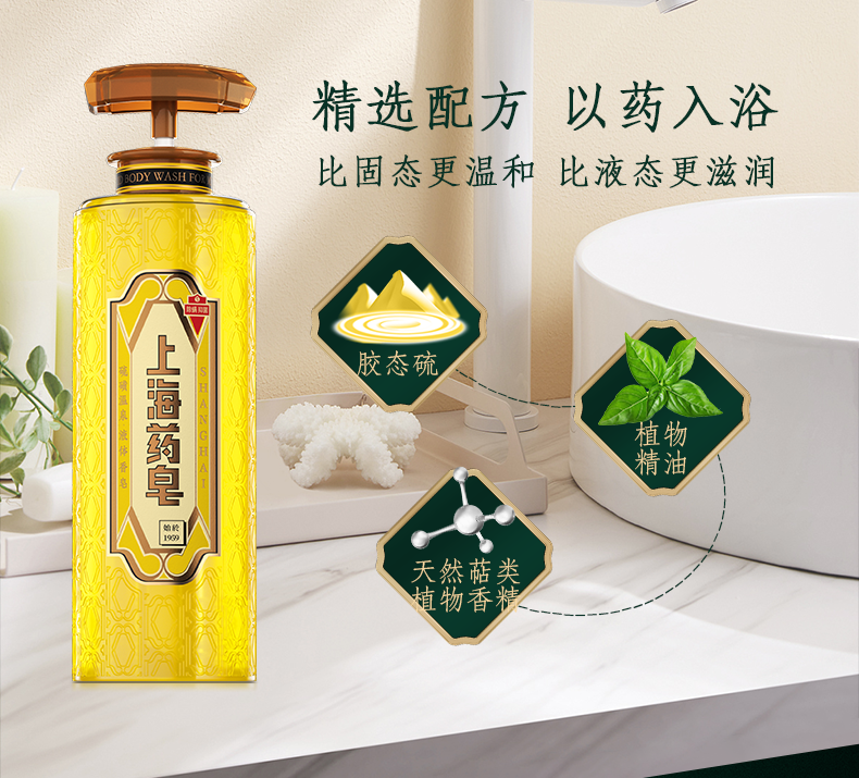 上海药皂 硫磺温泉香皂+海盐净肤液体香皂(2瓶*620g)