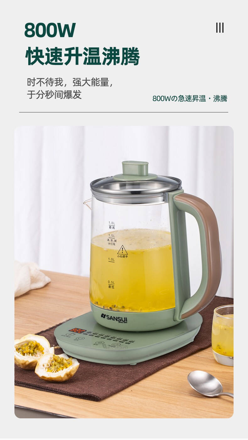 商品名称:山水新款养生壶高硼耐热透明壶体一键触控 自动控温KT-823(XSL-1853)