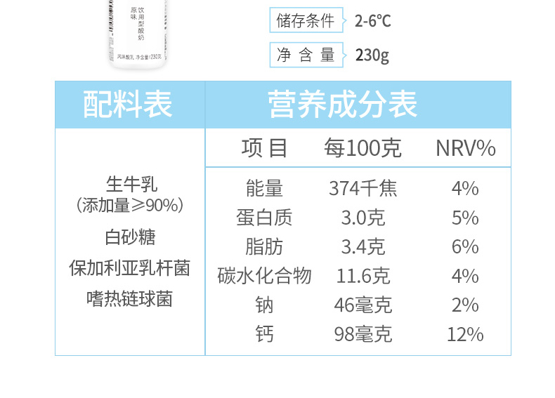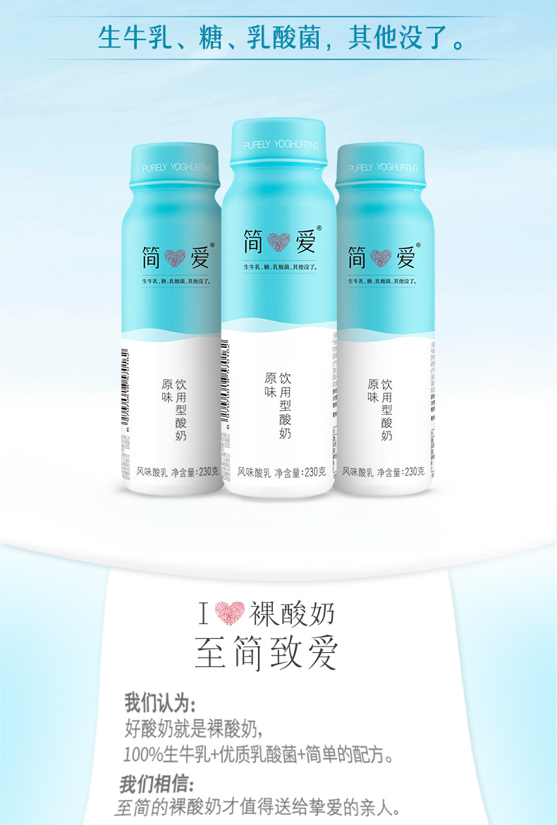 商品名称:简爱 饮用型裸酸奶原味12瓶*230G