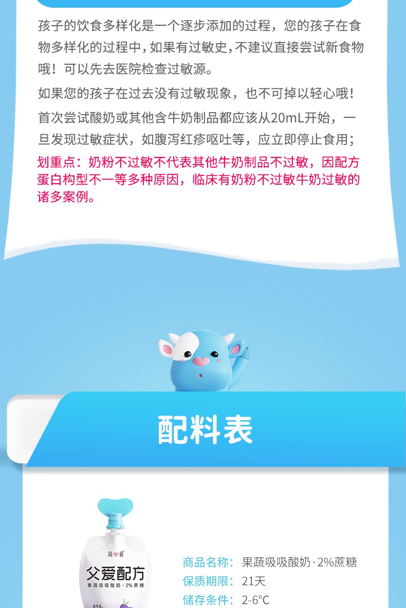 商品名称:简爱 父爱配方吸吸酸奶-2%蔗糖9袋*100g