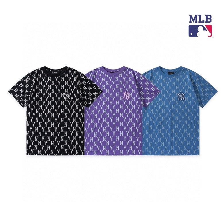 商品名称:MLB 宽松满标老花纯棉半袖t恤 黑色/紫色/蓝色 S-2XL下单请备注颜色尺码