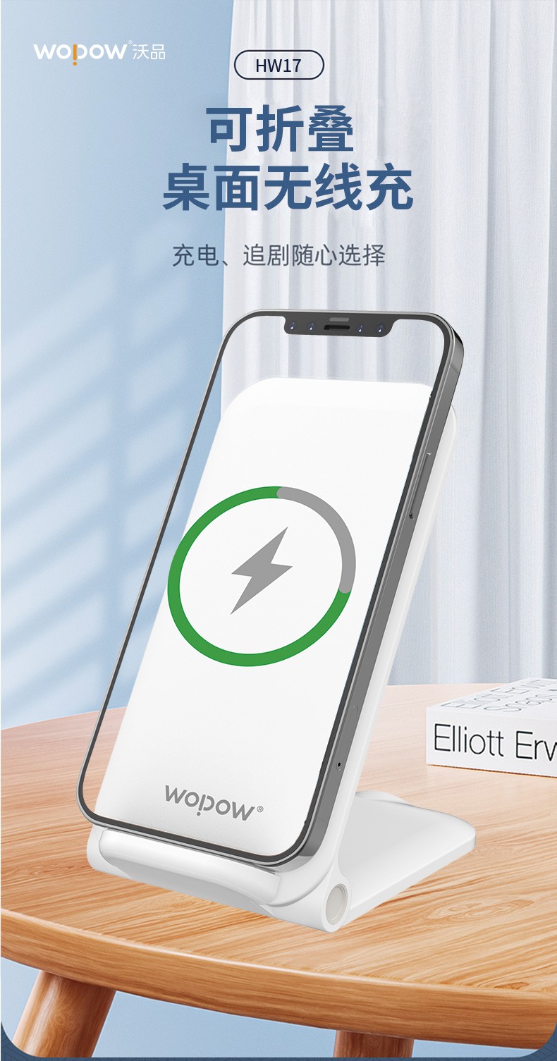 沃品(WOPOW)可折叠桌面无线充HW17 白色 6933185719341