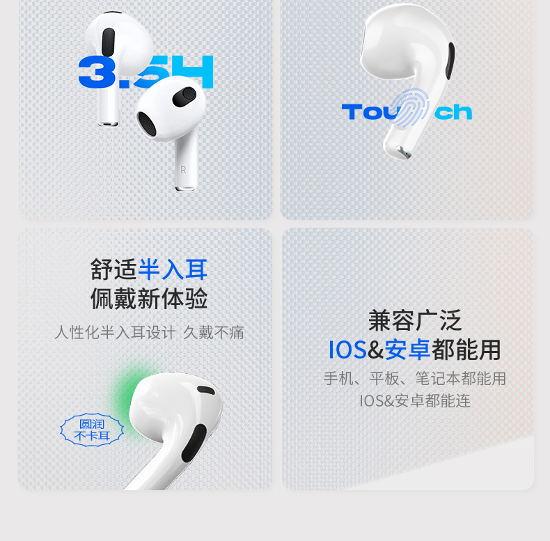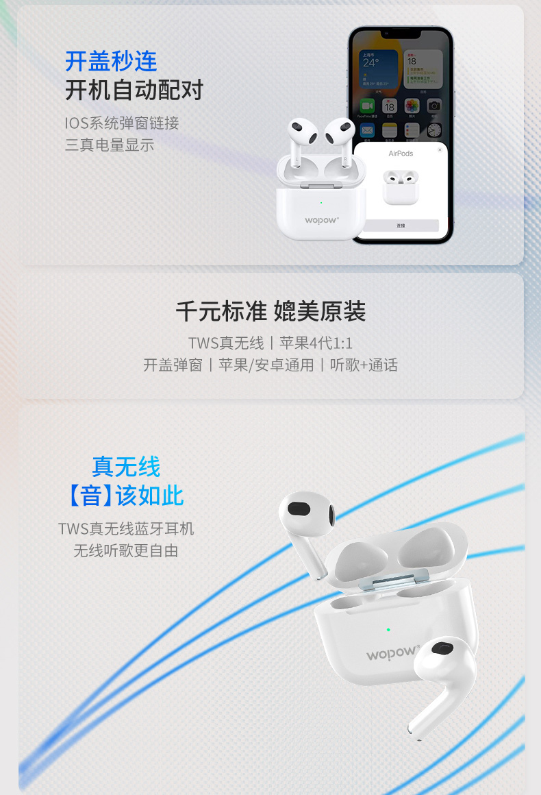 沃品(WOPOW)TWS蓝牙耳机 AirPro4P 白色 6933185719327