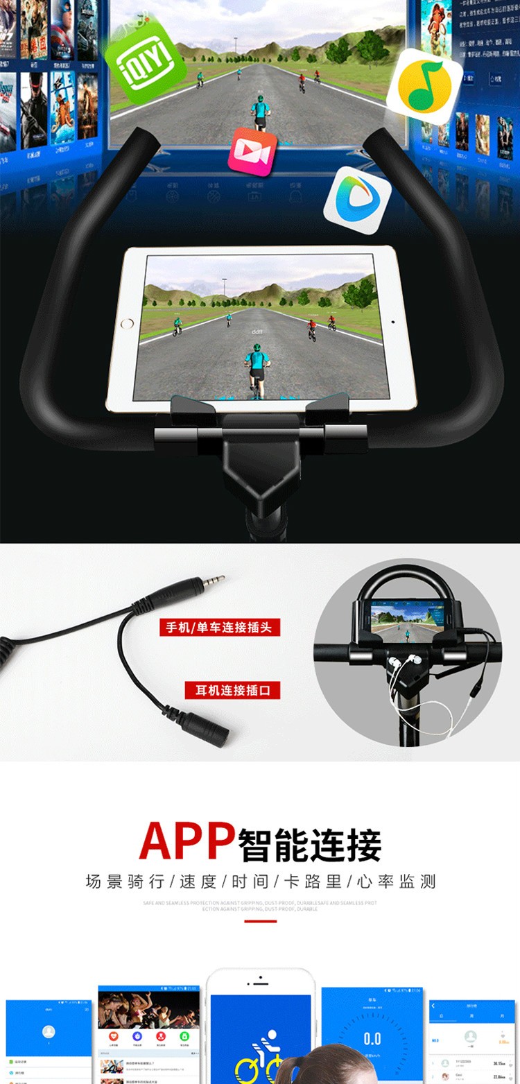 商品名称:乔力豪华款Q5动感单车 游戏单车 全包家用动感单车 健身车 游戏款APP款黑红