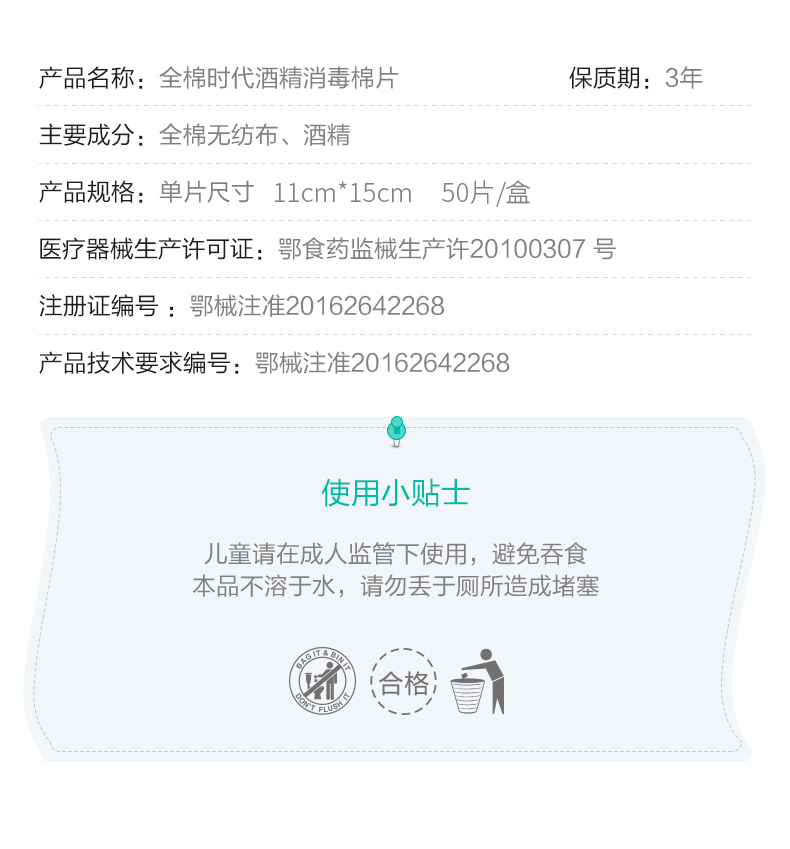 商品名称:全棉时代 酒精消毒片1盒*50片 PNJ20300003 6907649193510