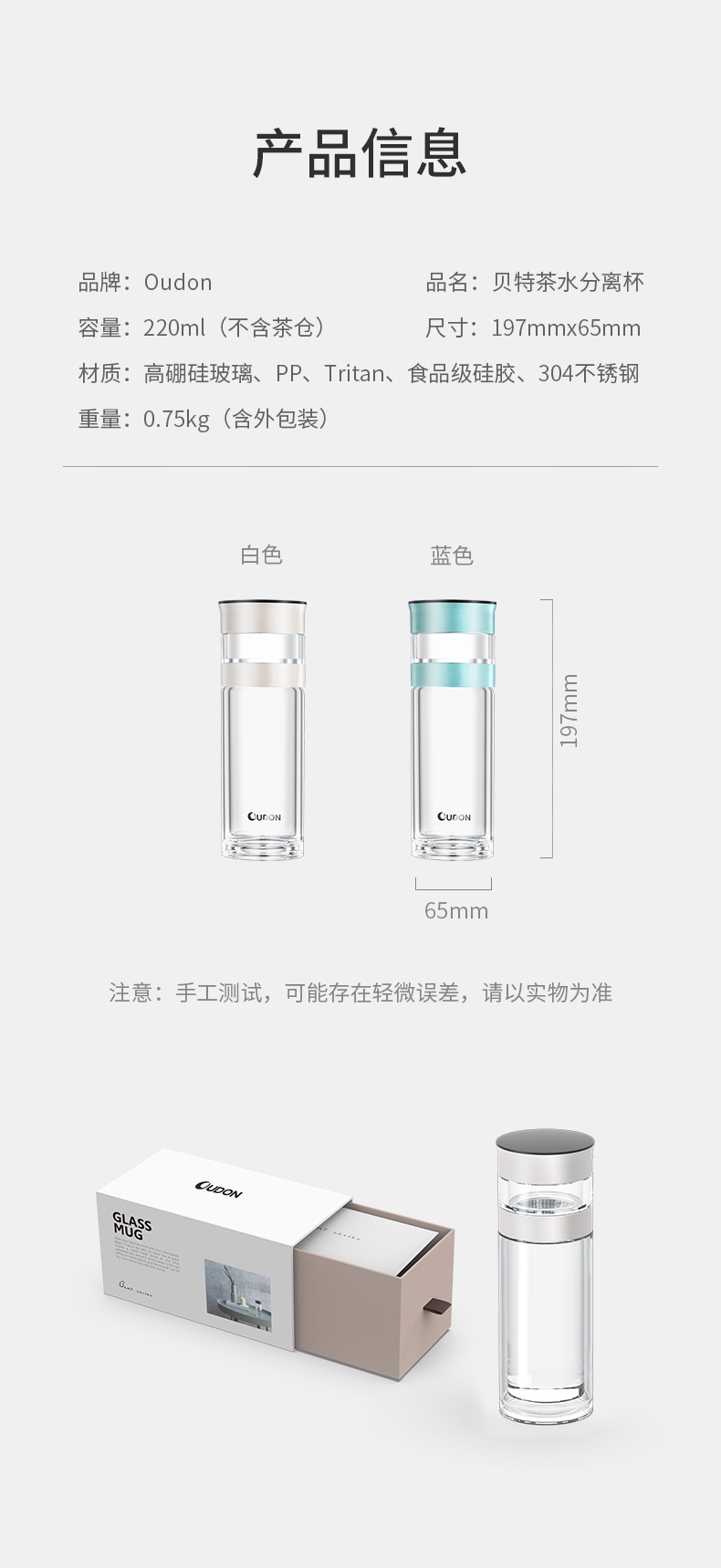 商品名称:欧德龙 贝特茶水分离杯 OG-22C21 220ml 蓝/白 下单请备注颜色