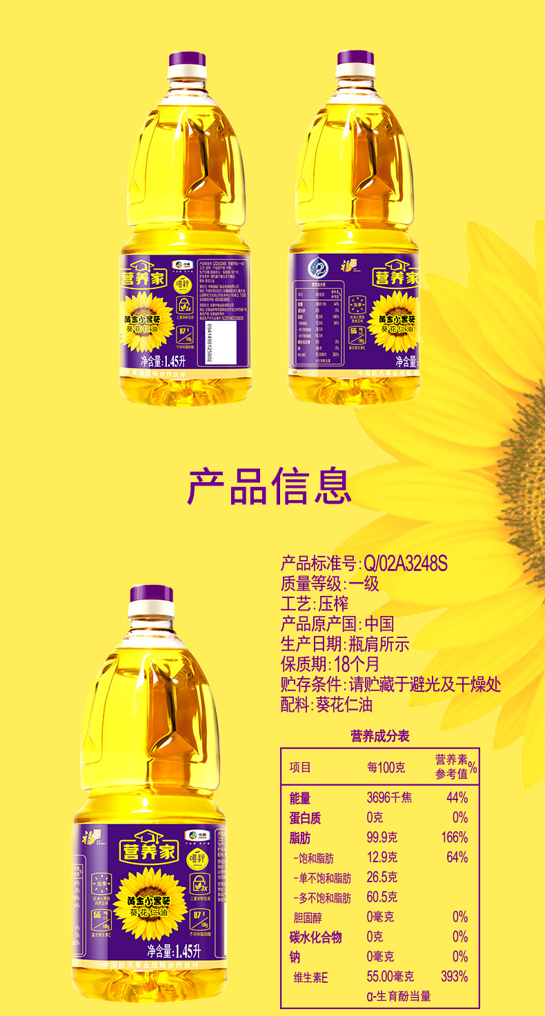 商品名称:中粮 福临门唯粹金典小黑葵葵花仁油礼盒 1.45L*3瓶