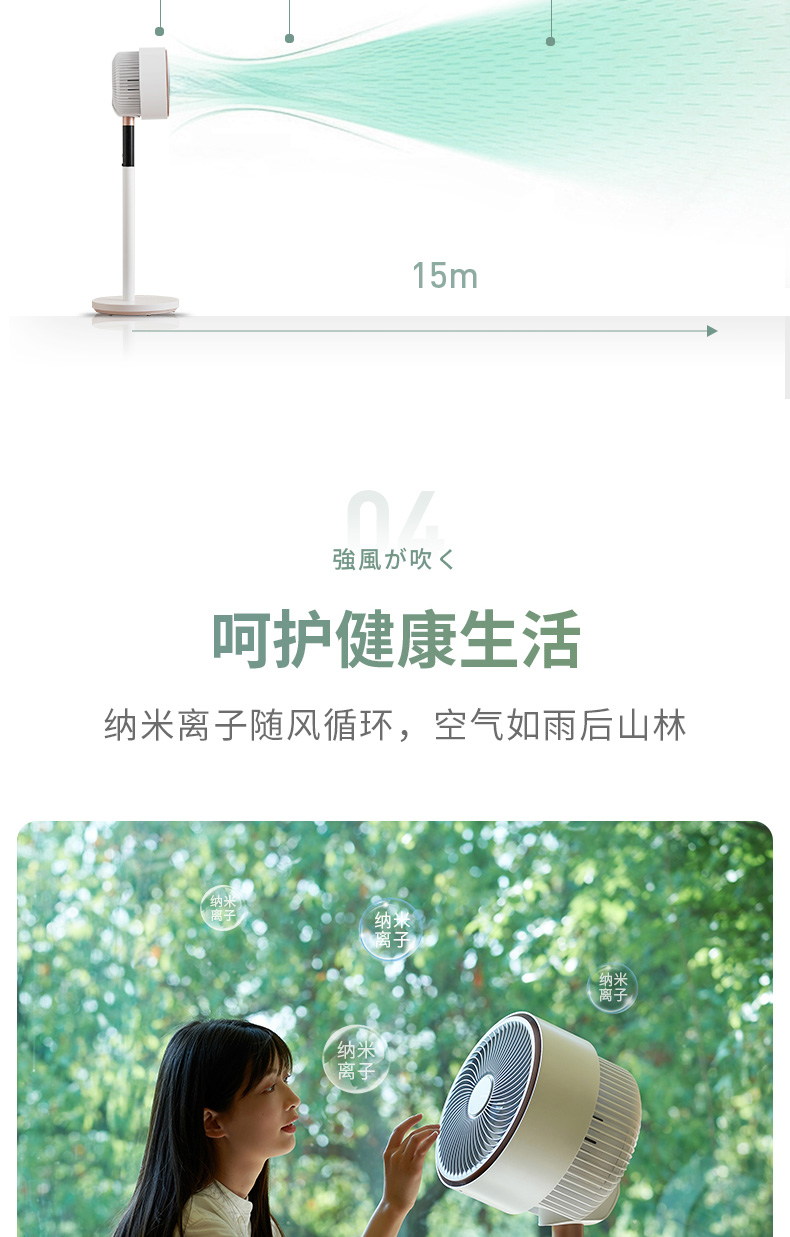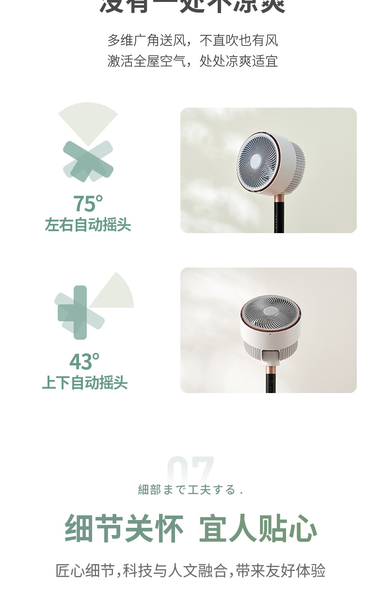 涡旋三翼引擎扇叶打造超远距离舒适风,直流变频电机,运行稳定更静音。