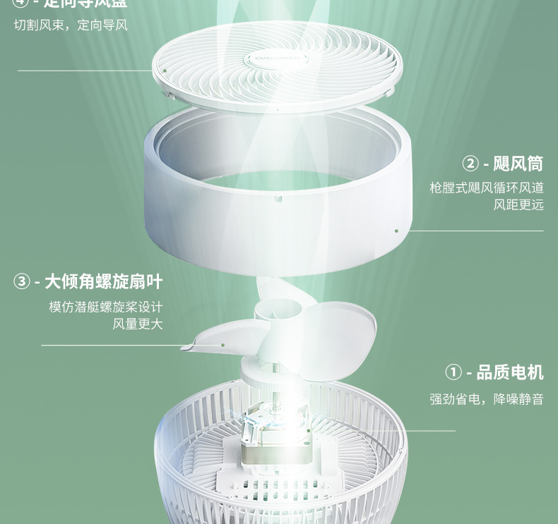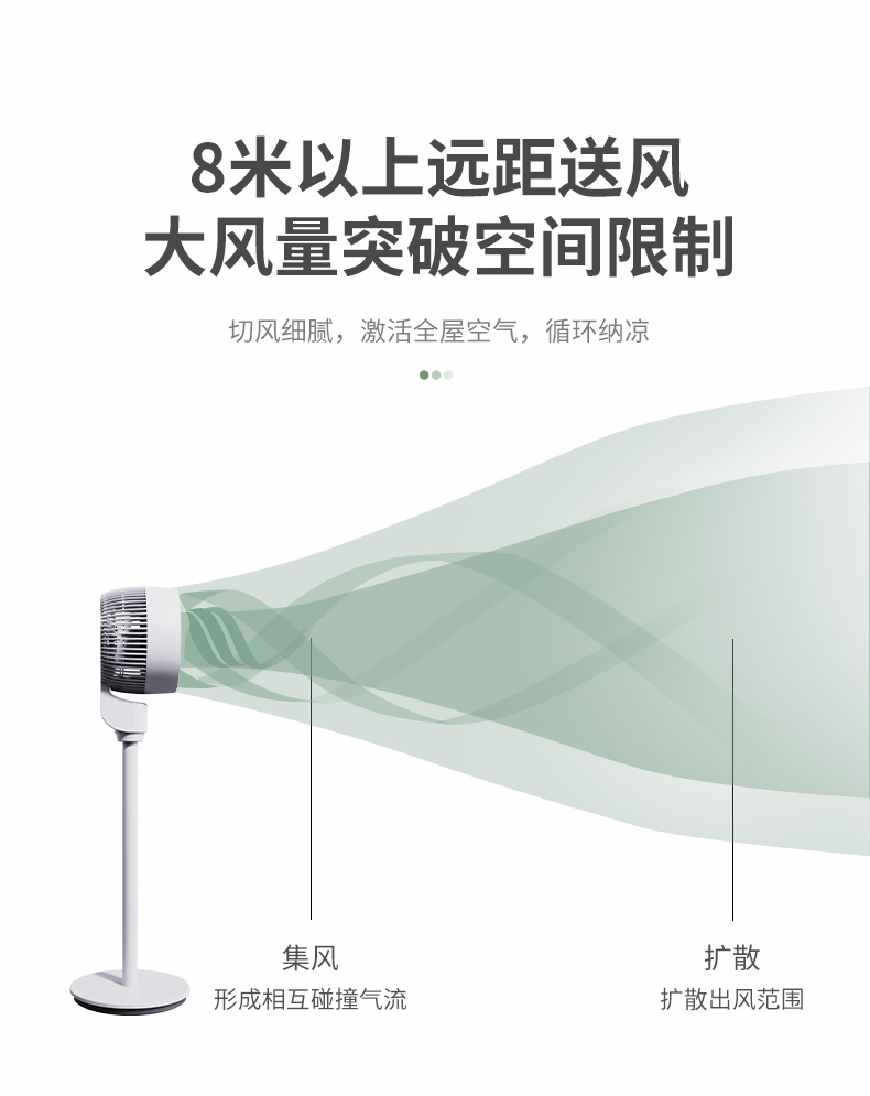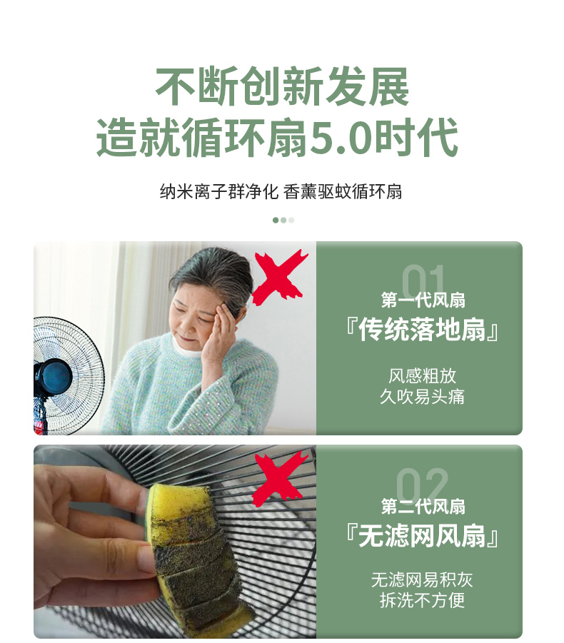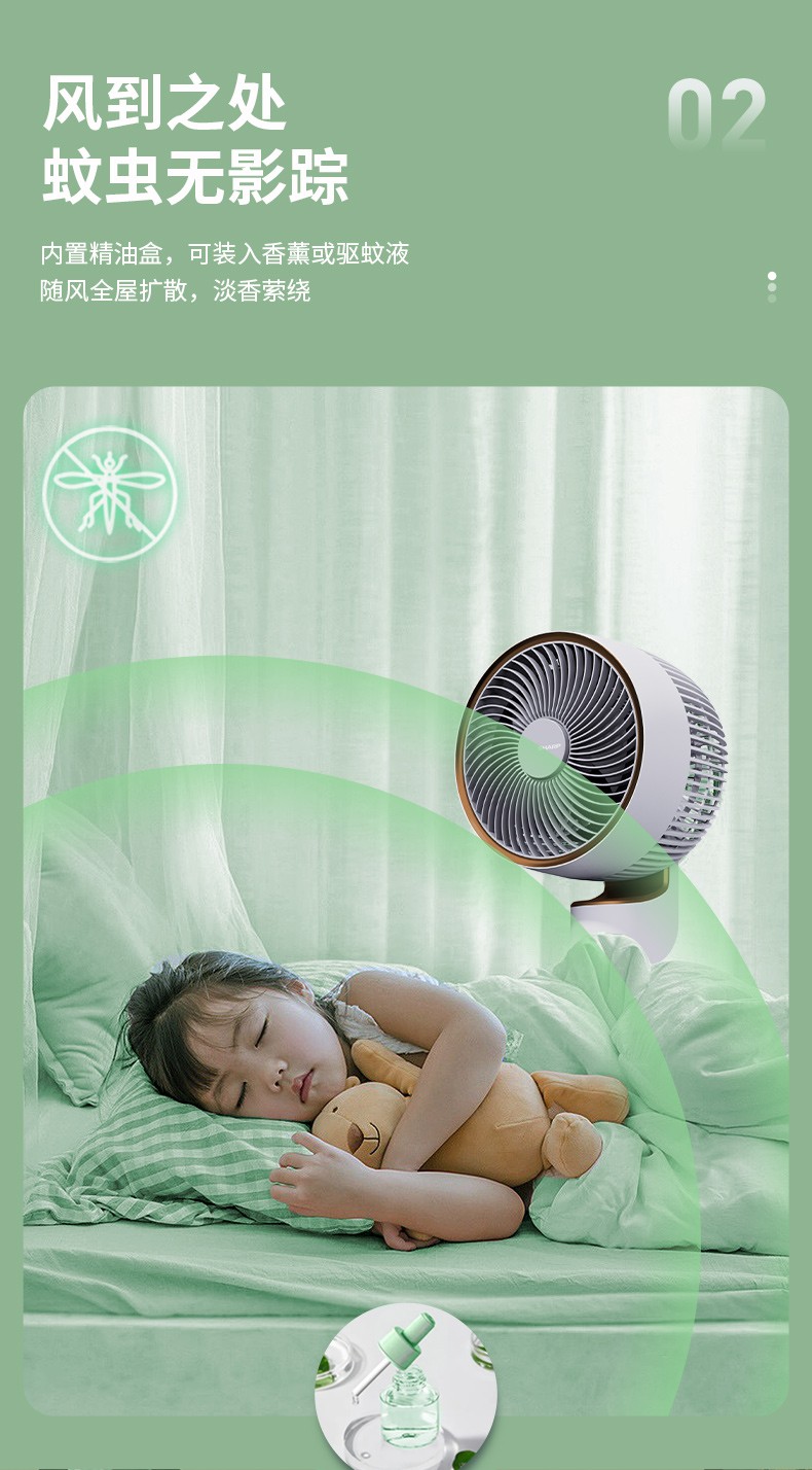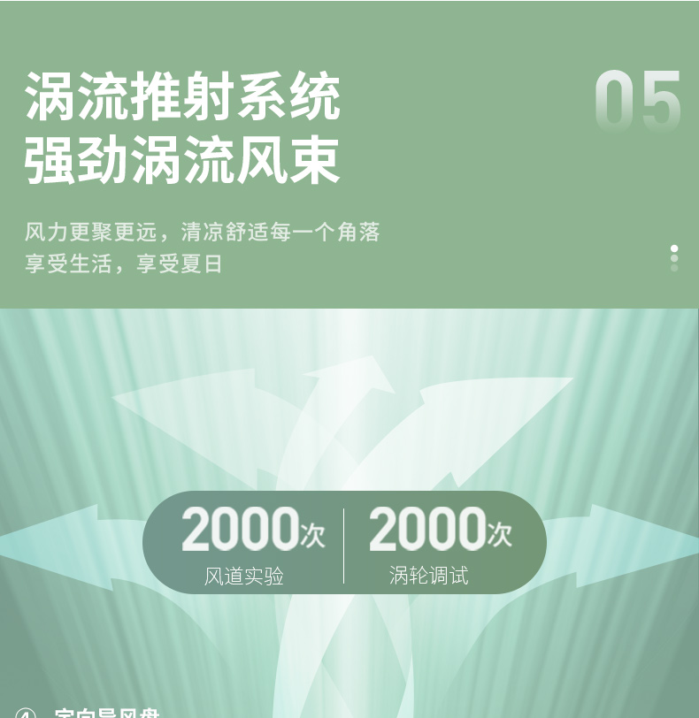 仿生扇叶+涡型动压,汇聚超强气流,强劲出风。前网罩可拆洗,90°朝天吹,一年四季皆可以。