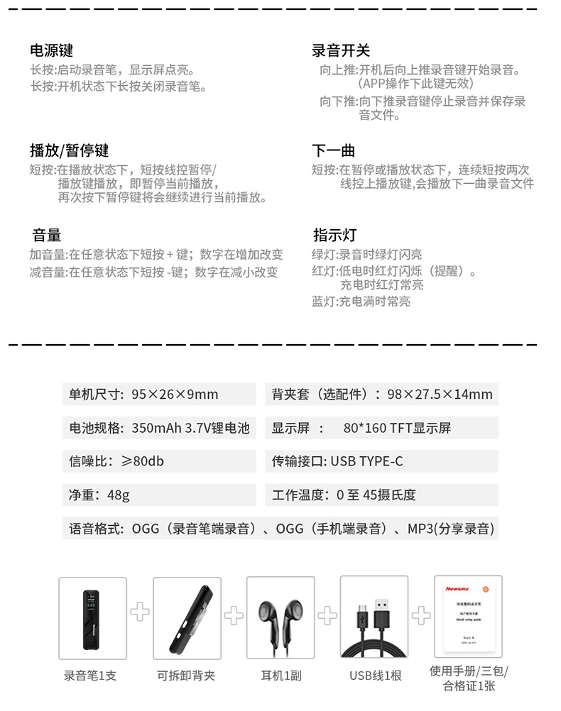 商品名称:纽曼 录音笔 XD01 32G 黑色 6934451704580