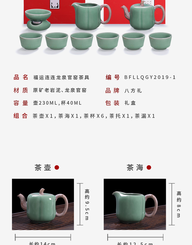 商品名称:八方礼 福运连连龙泉官窑茶具 BFLLQGY2019-1 6972391250132