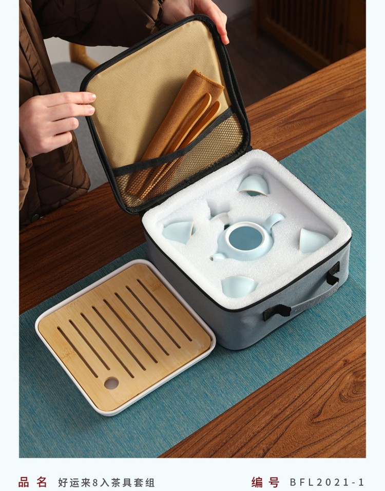 八方礼 好运来8入茶具套组 BFL2021-1天空蓝 6972391250835