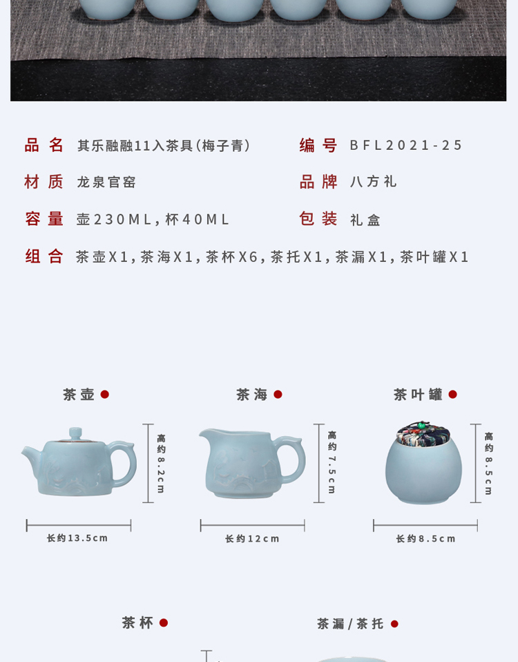 商品名称:八方礼 其乐融融11入茶具(梅子青) BFL2021-25 6972391251047