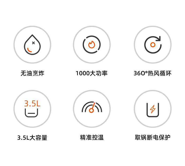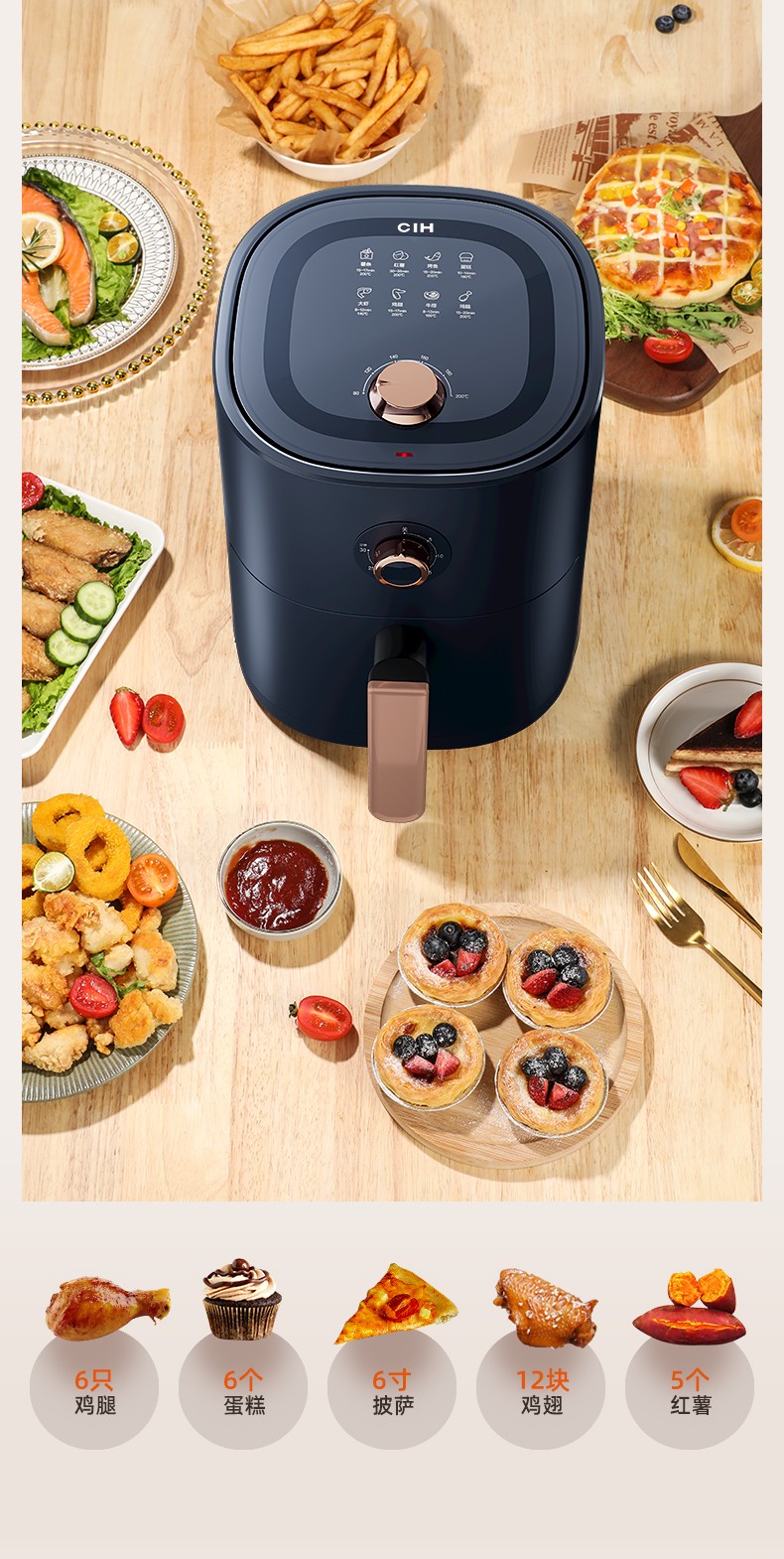 商品名称:CIH 机械款空气炸锅 AM3511 无惧油腻味道好 任性开吃煎炸烤