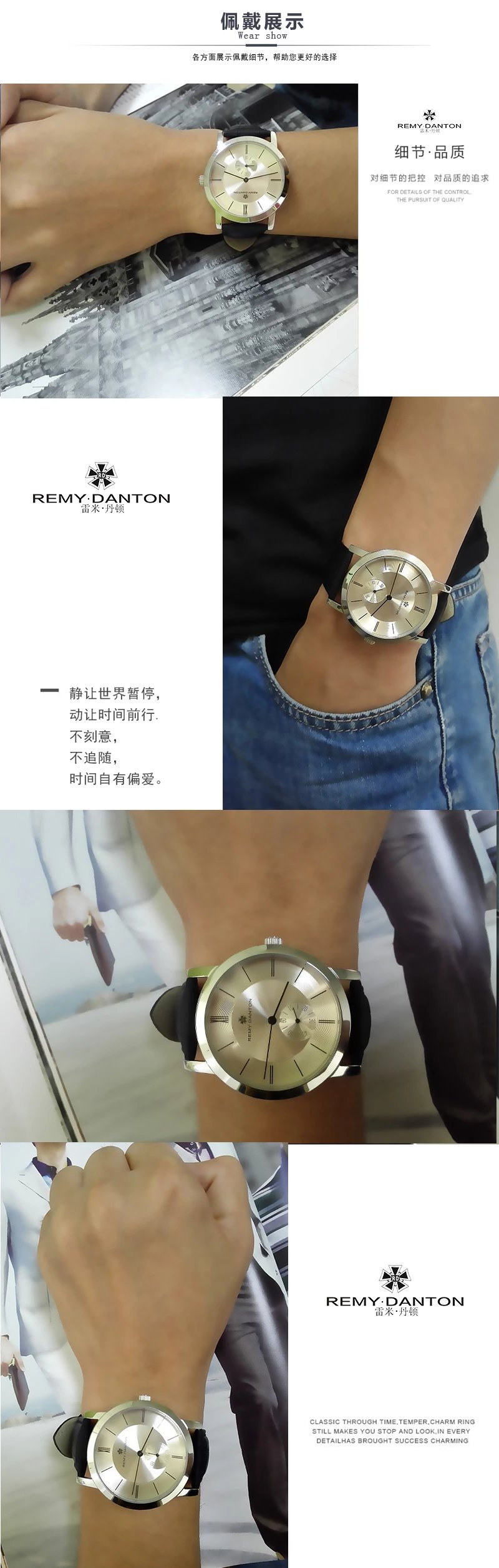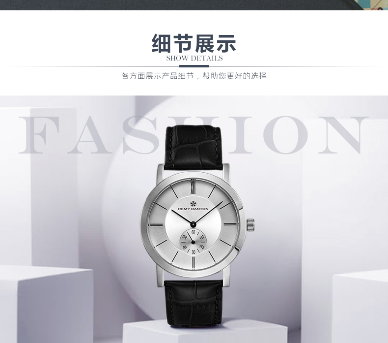 商品名称:雷米丹顿(REMY DANTON)正品石英表 男表大表盘小三针简约大气男士手表薄款白面黑色皮带G315.01