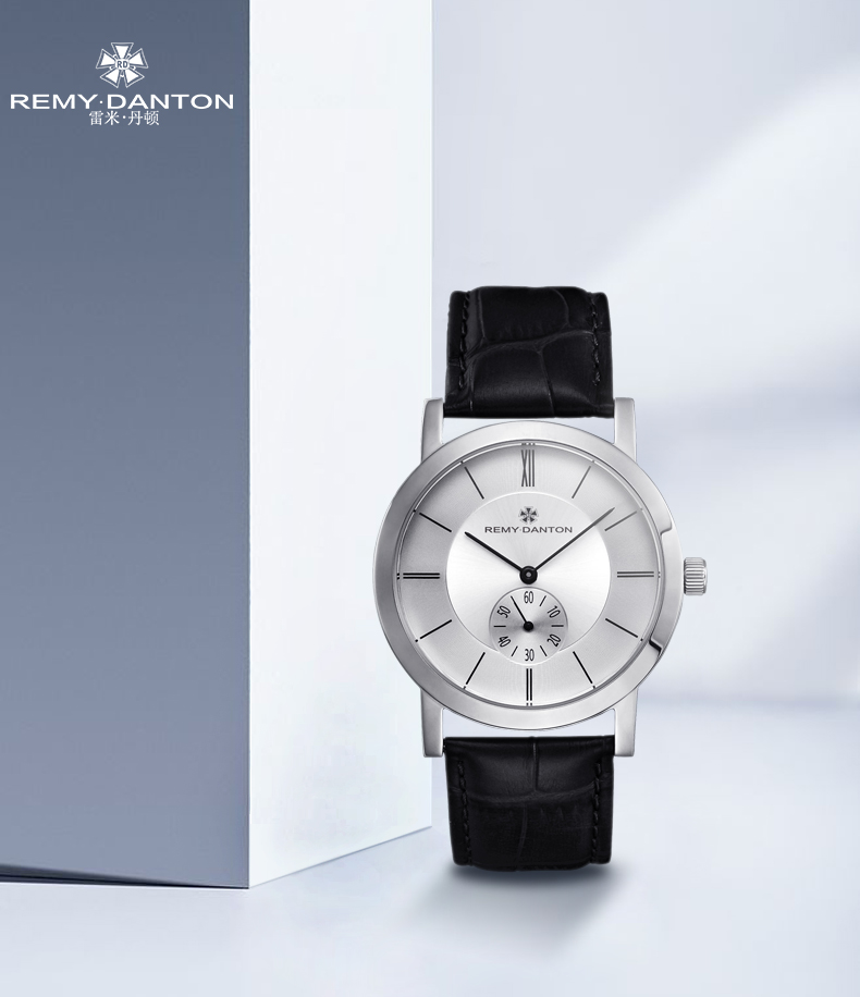 雷米丹顿(REMY DANTON)正品石英表 男表大表盘小三针简约大气男士手表薄款白面黑色皮带G315.01
