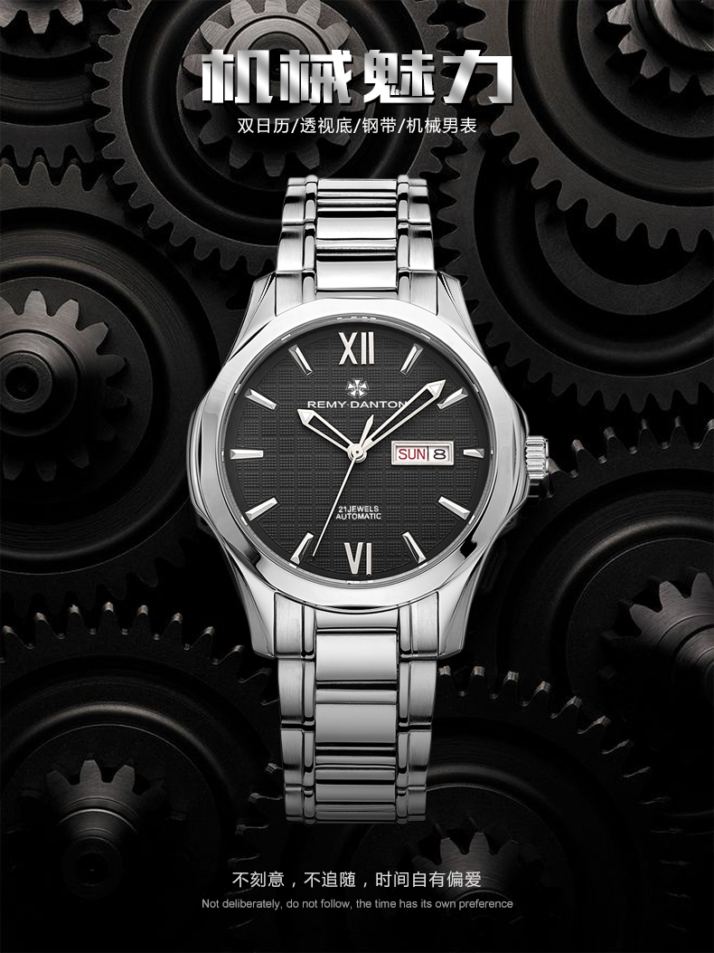 商品名称:雷米丹顿(REMY DANTON)正品夜光表全自动机械表钢带镀金男士手表防水双日历商务潮流男表G316.03