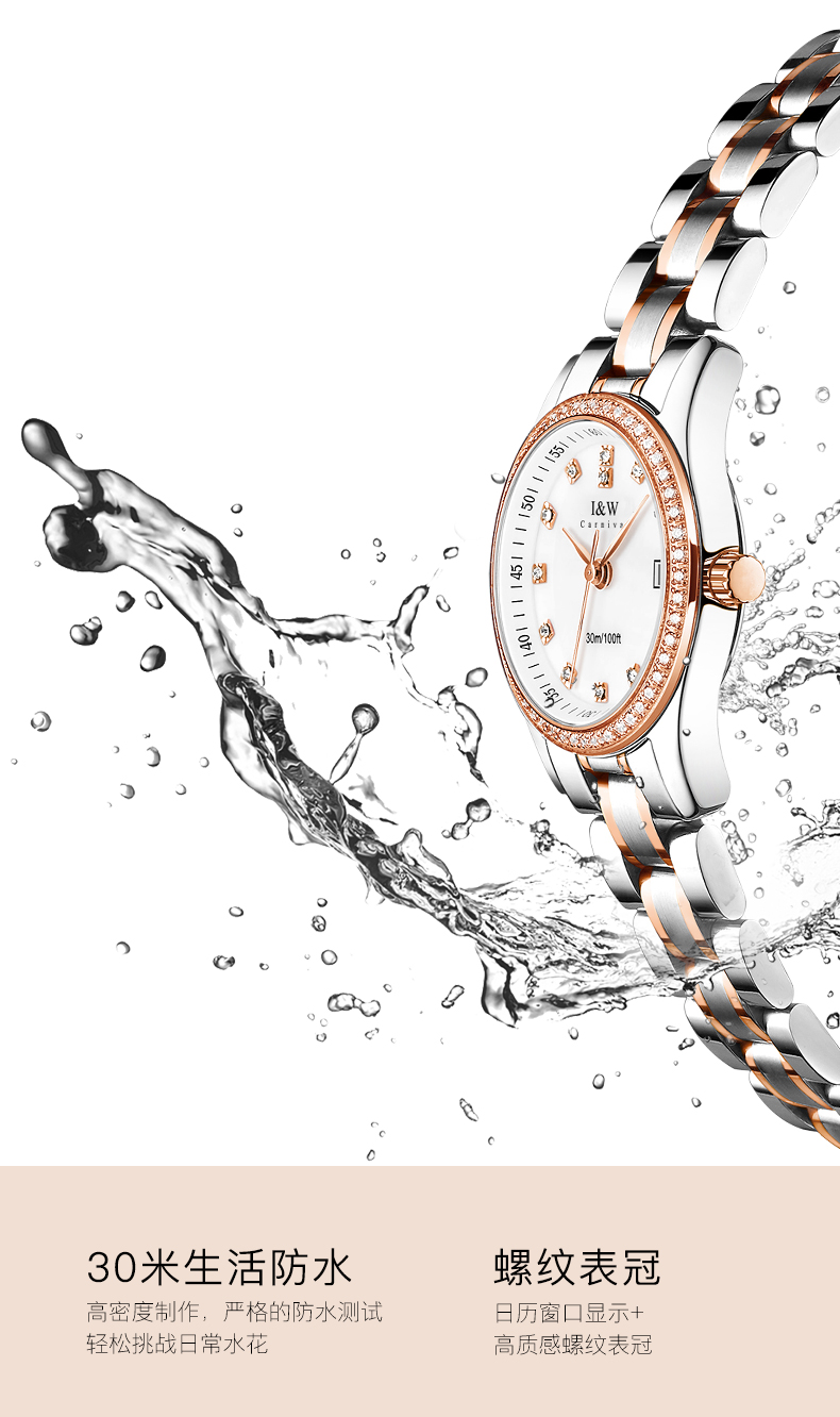 爱沃驰 简约气质石英钢带女表8536 间玫钢带黑面