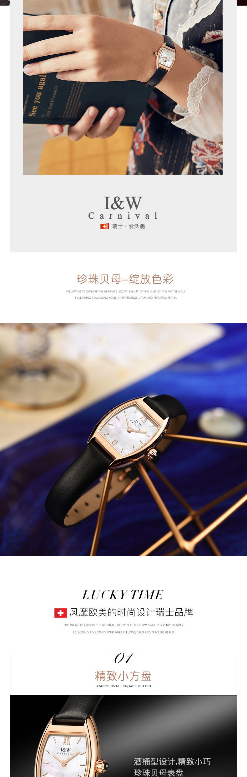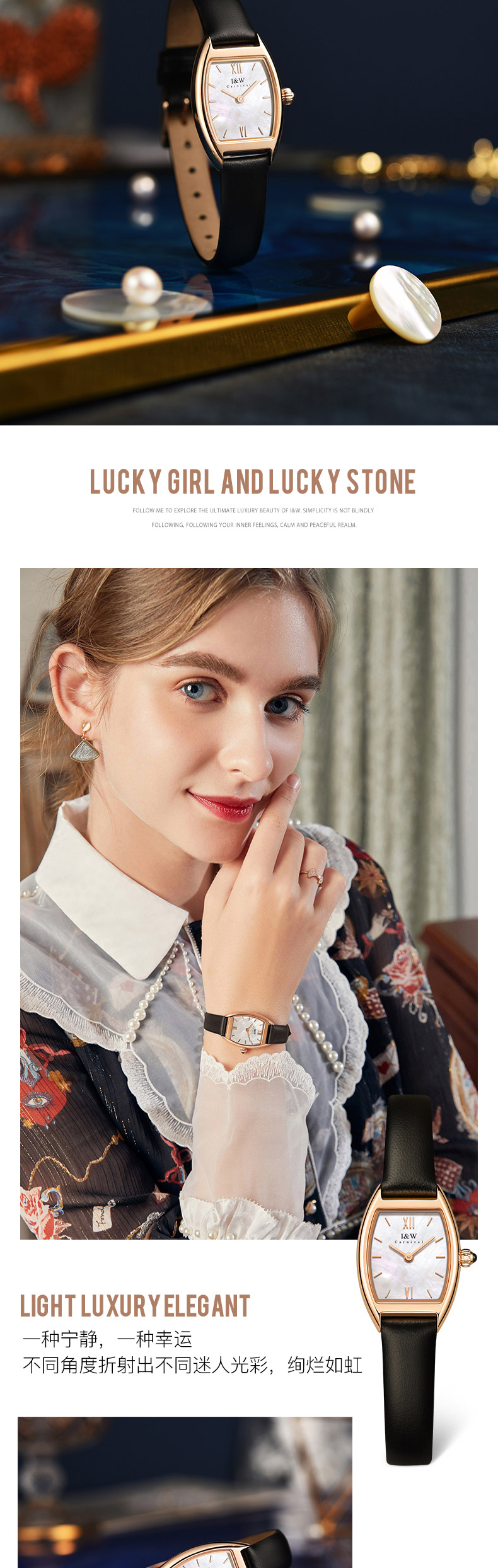 商品名称:爱沃驰 酒桶型石英女表3006L 玫壳黑皮白面