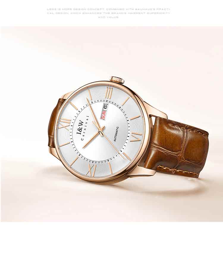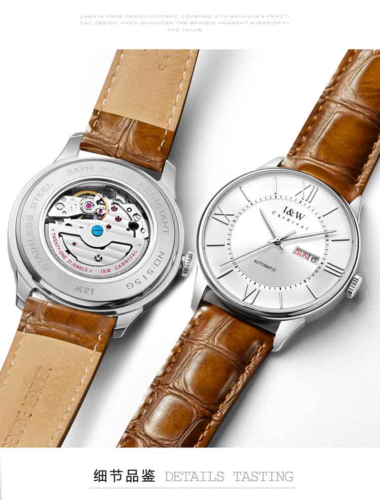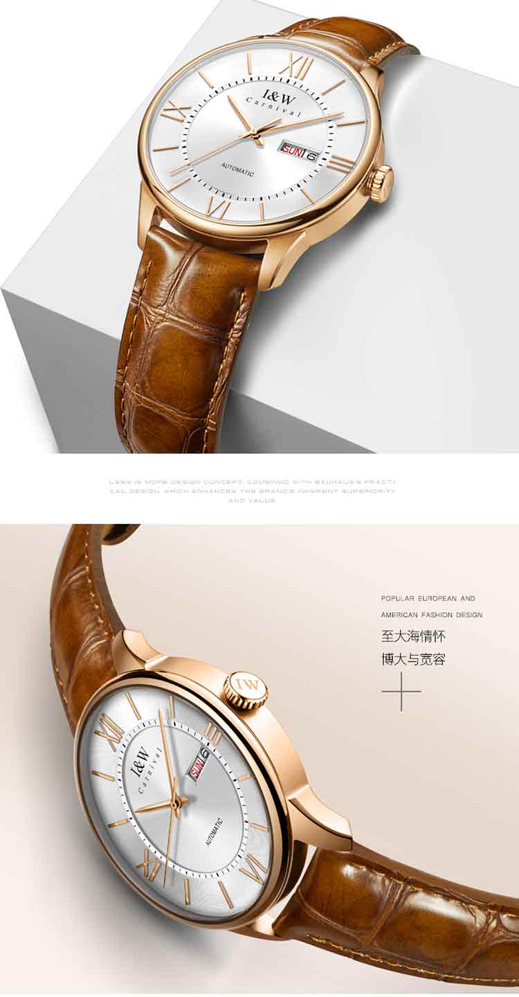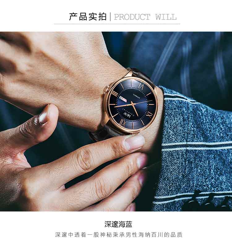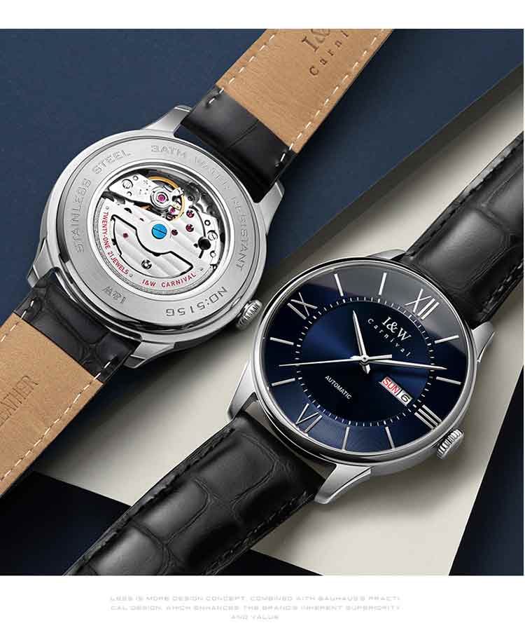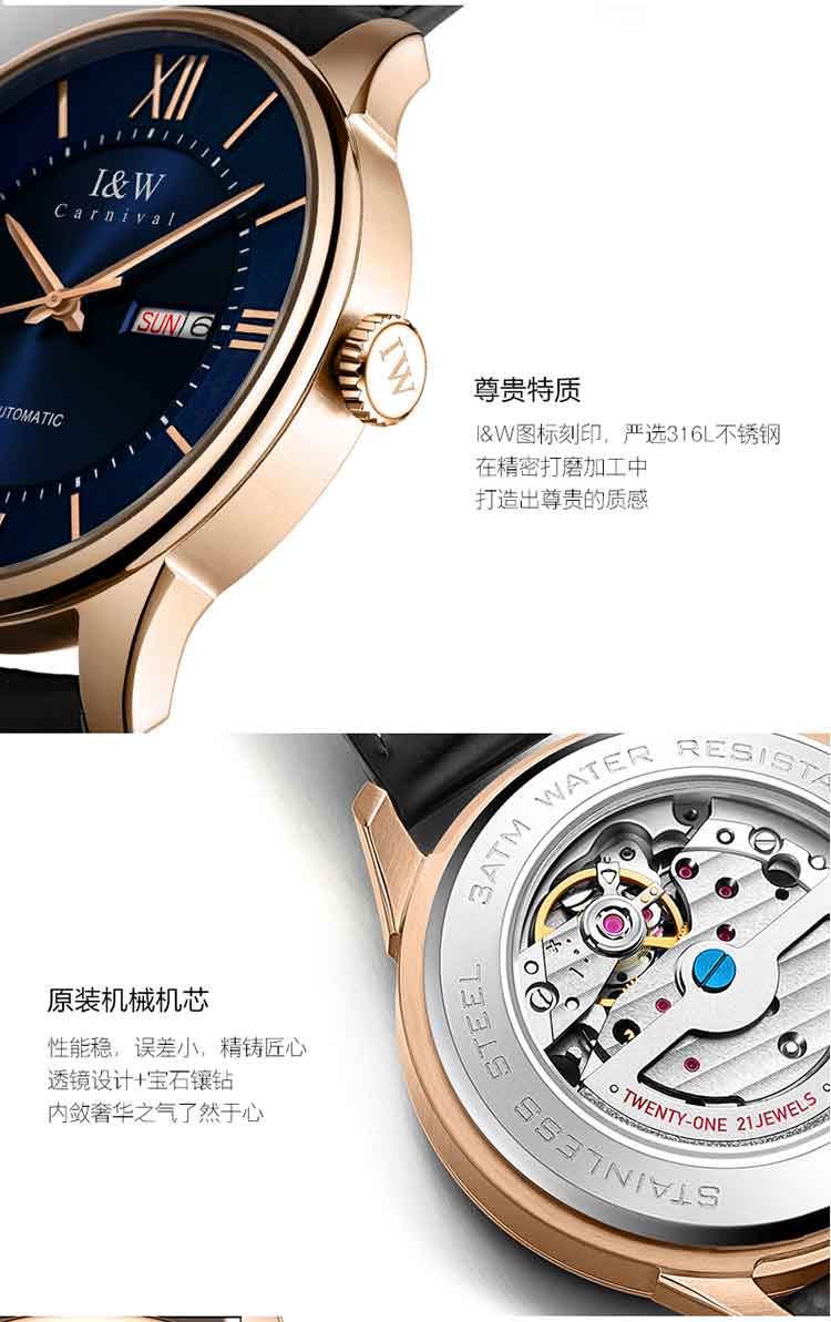 商品名称:爱沃驰 领袖系列全自动罗马刻度皮带男士腕表515G 银壳蓝面黑色皮带