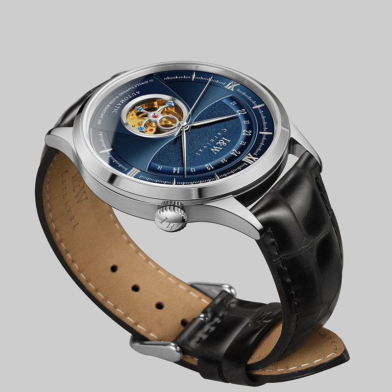 爱沃驰 指挥官系列卡罗素机械皮带男表525G 银色蓝面竹节黑皮