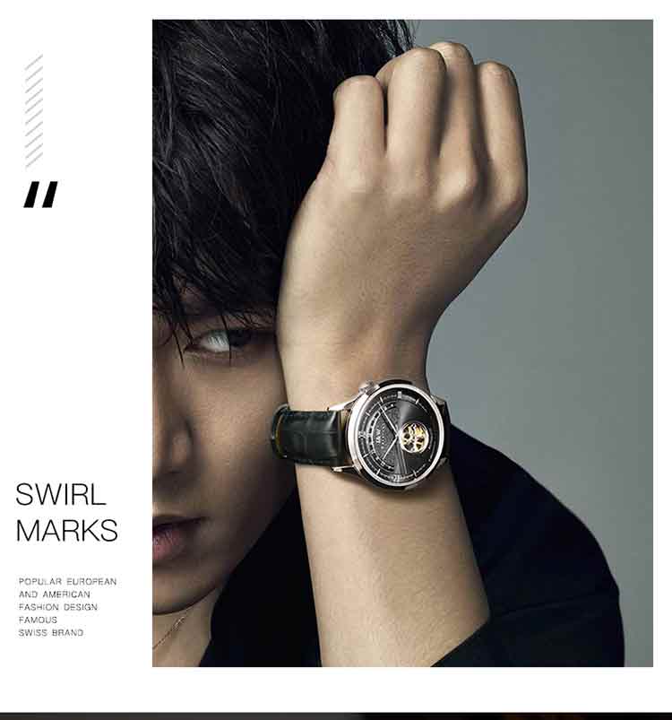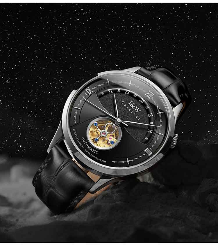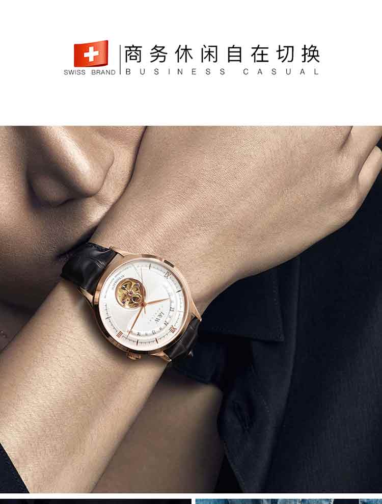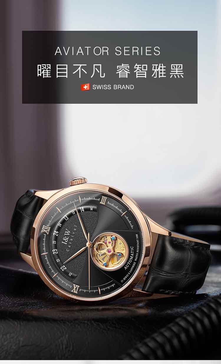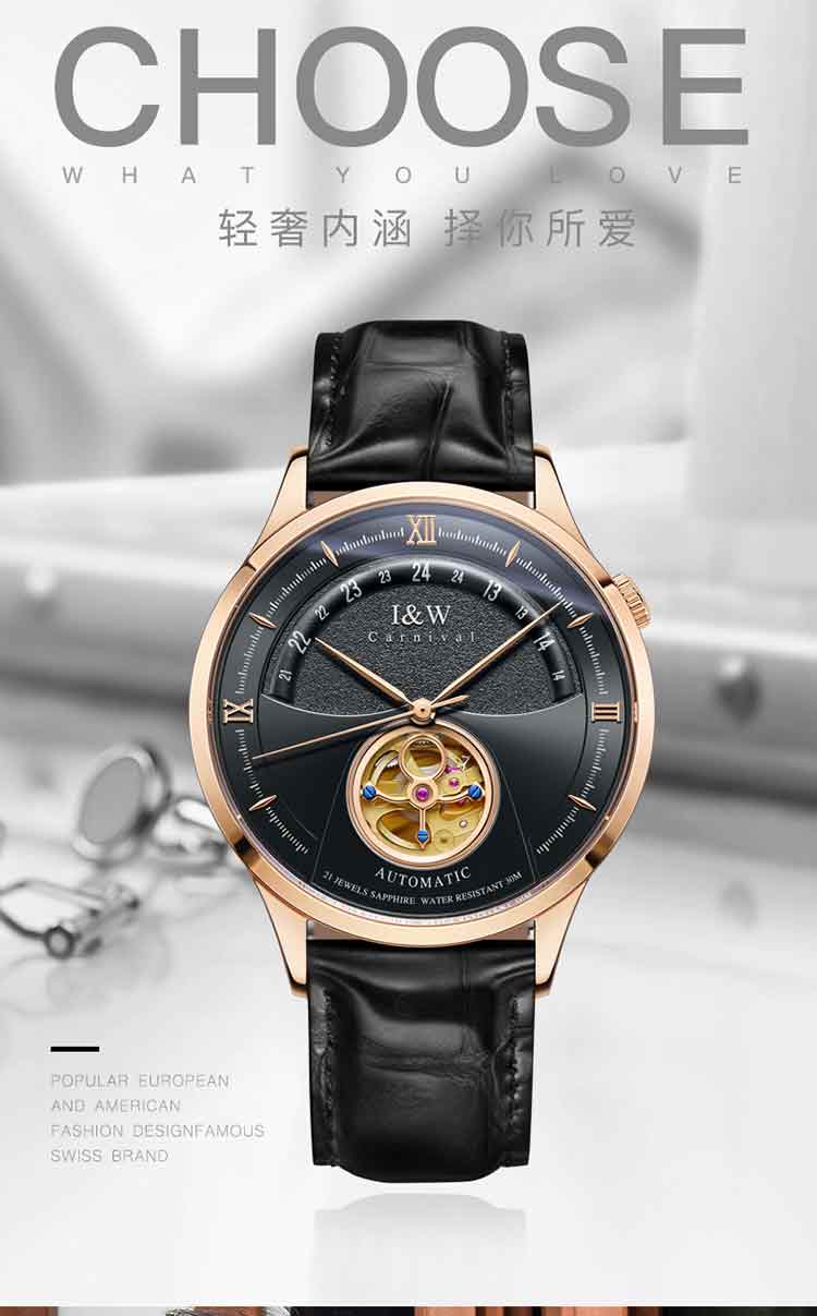 商品名称:爱沃驰 指挥官系列卡罗素机械皮带男表525G 银色蓝面竹节黑皮