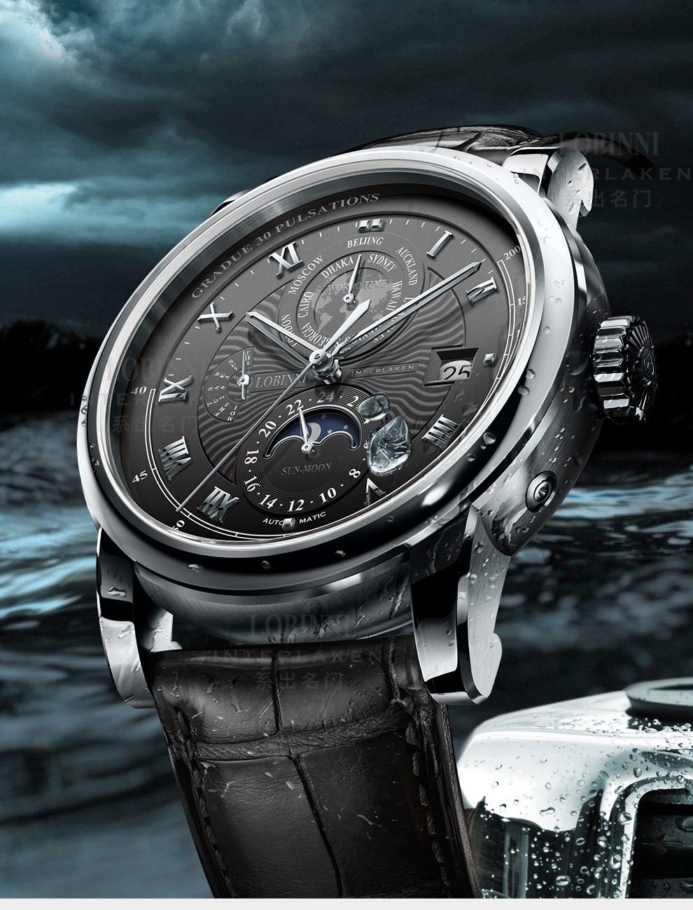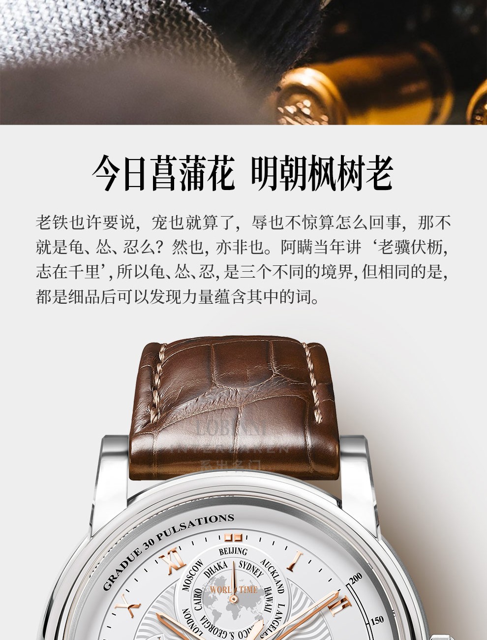 商品名称:罗宾尼 男士全自动机械表 防水大表盘16003 红金黑面棕皮